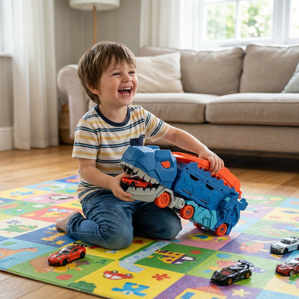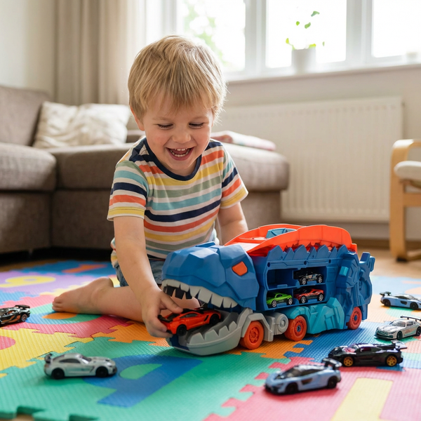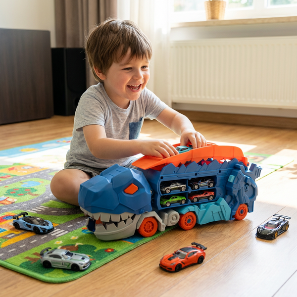Der Dino-Transporter ist nicht einfach nur ein weiteres Spielzeug. Er ist die clevere Lösung für weniger Chaos, weniger Diskussionen und spürbar mehr Ruhe im Alltag.